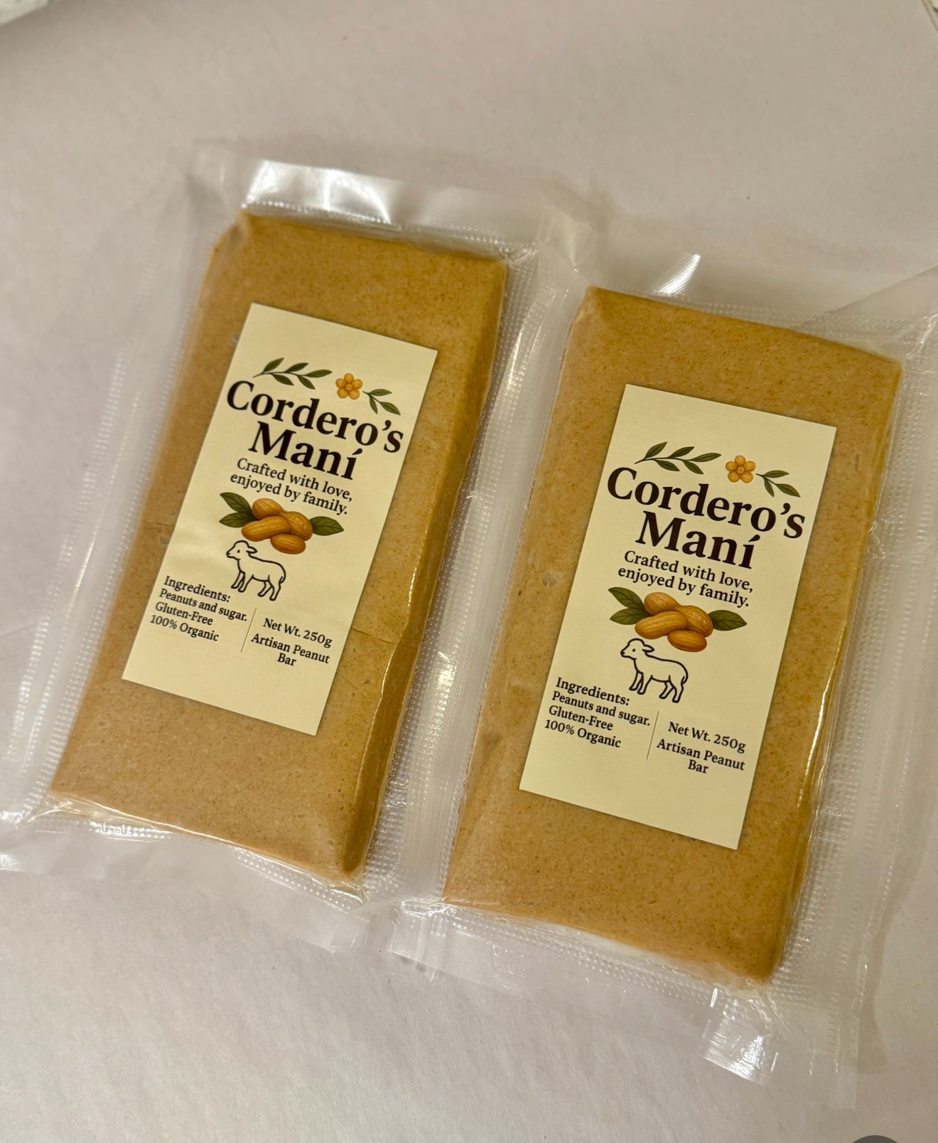 Descubre el sabor auténtico del turrón de maní cubano con nuestras barras artesanales Cordero’s Maní. Hechas a mano con solo dos ingredientes: maní y el punto exacto de azúcar. Sin conservantes, sin aditivos, solo puro sabor y tradición. Cada barra pesa entre 8 y 10 onzas y viene empacada con cariño por una mamá cubana emprendedora, dedicada a llevarte un pedacito de su infancia en cada bocado.